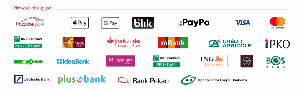 Korzystamy z bramki płatniczej Przelewy24, która daje Ci pełną swobodę w wyborze metody płatności: