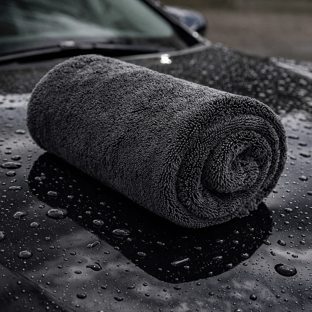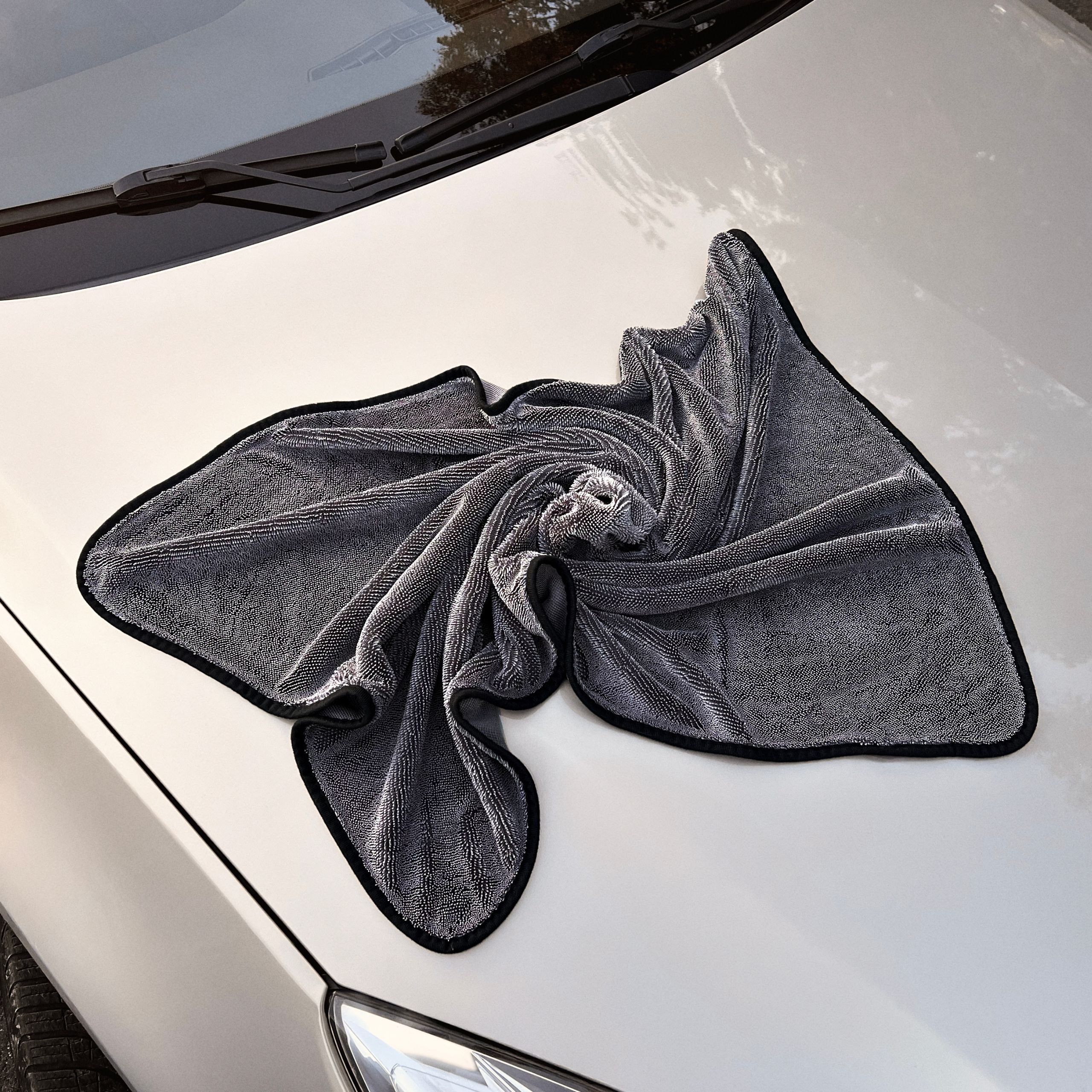 Technologia Twisted Pile opiera się na skręconych włóknach, które realnie zwiększają chłonność ręcznika. Zamiast rozcierać wodę po lakierze, materiał ją zbiera i zatrzymuje w strukturze. Ręcznik jest gruby, sprężysty i dobrze „siada” na powierzchni, dzięki czemu osuszanie idzie szybciej i bez dociskania.