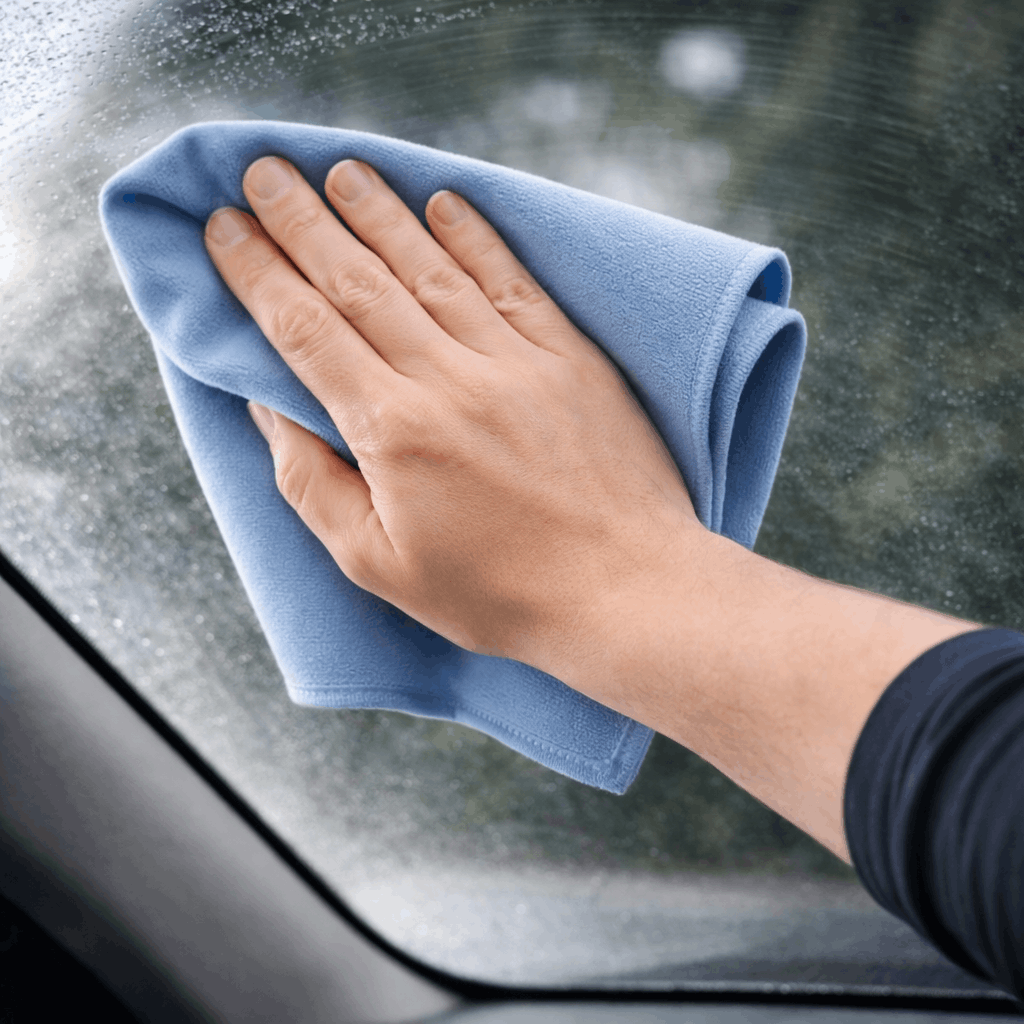 4. Jeśli szyba jest jeszcze lekko wilgotna, wykonaj szybkie finalne przetarcie suchą stroną mikrofibry.